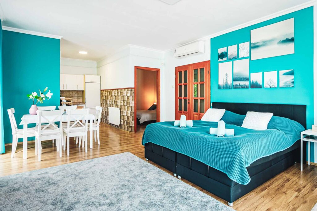5 légkondicionált, tágas apartman, felszerelt konyhával, zárt parkolóval, rendezett kerttel egész évben várja kedves Vendégeit. Közös használatú, zuhanyzóval ellátott szauna biztosítja a kényeztetést, ha az időjárás a borongósabb arcát mutatja.